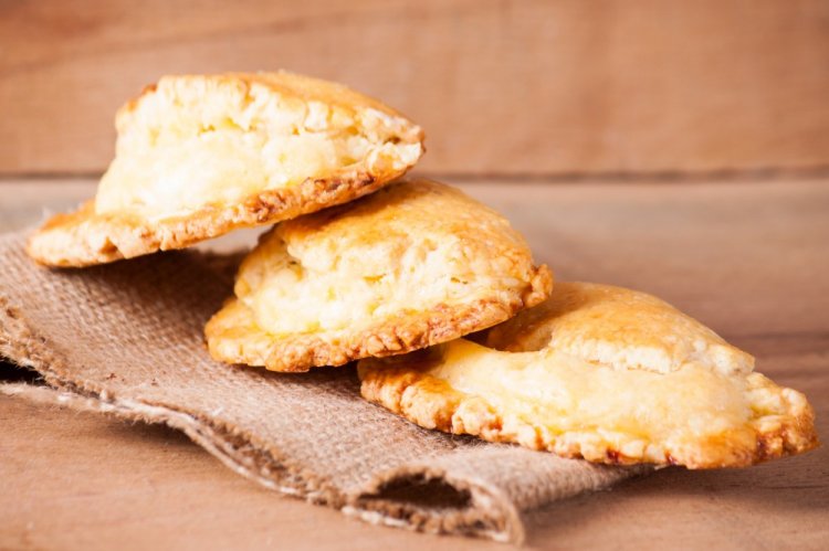 Для теста: 100 г сливочного масла, 1 стакан кефира, 100 г твердого или полутвердого сыра, 2 стакана муки, 1 ч.л. разрыхлителя, 1 ч.л. сахара.
