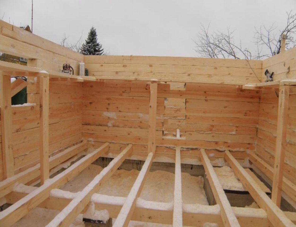 Примечание: Я знаю о необходимости компенсаторов усадки на столбах — на момент написания статьи они уже были установлены.