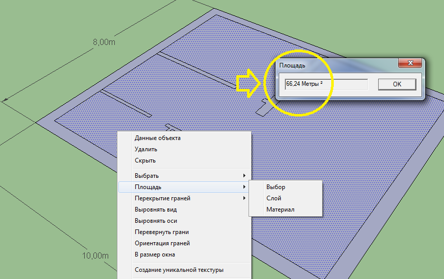 У меня дом внешними размерами 8*10 м, два этажа, площадь бетонного пола минус стены 66,2 кв.м., соответственно площадь двух этажей 132,4 кв.м